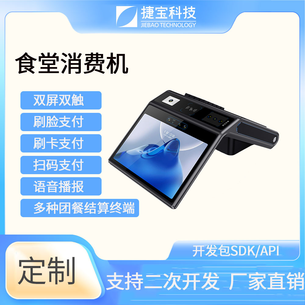 捷寶科技是國(guó)內(nèi)最早推出基于Android系統(tǒng)智能硬件的廠家之一。產(chǎn)品形態(tài)涵蓋手持、臺(tái)式、立式、掛式、柜式、單屏、雙屏;功能上圍繞NFC識(shí)別、條碼識(shí)別、生物識(shí)別,AI識(shí)別等技術(shù)大類,開發(fā)出可識(shí)別CPU卡、M1卡、射頻卡、二代身份證、社???、一維條碼掃描、掃碼支付、指紋識(shí)別、人臉識(shí)別、掌靜脈識(shí)別、虹膜識(shí)別、AI菜品識(shí)別、智能語(yǔ)音識(shí)別等功能的各類產(chǎn)品。